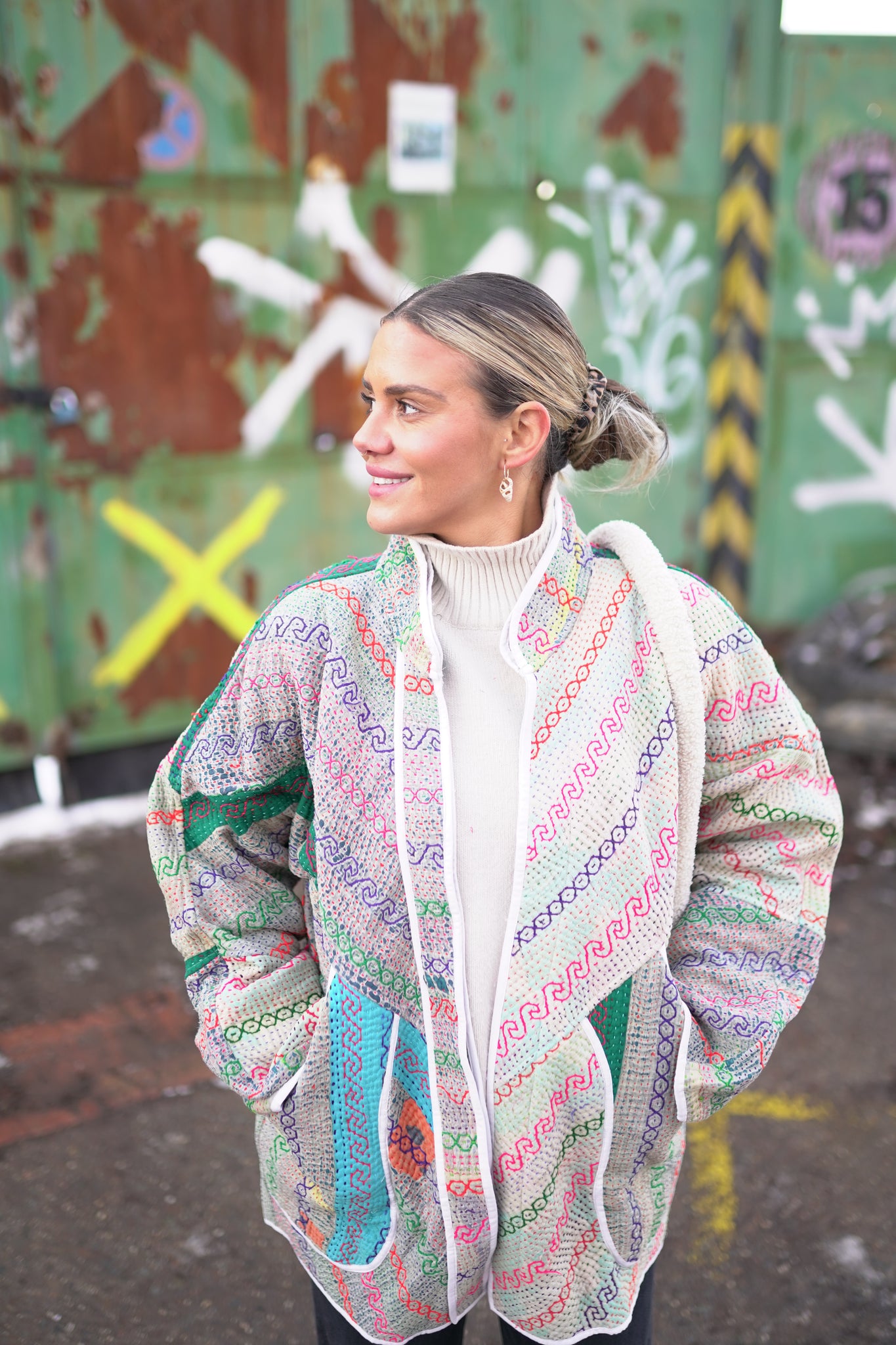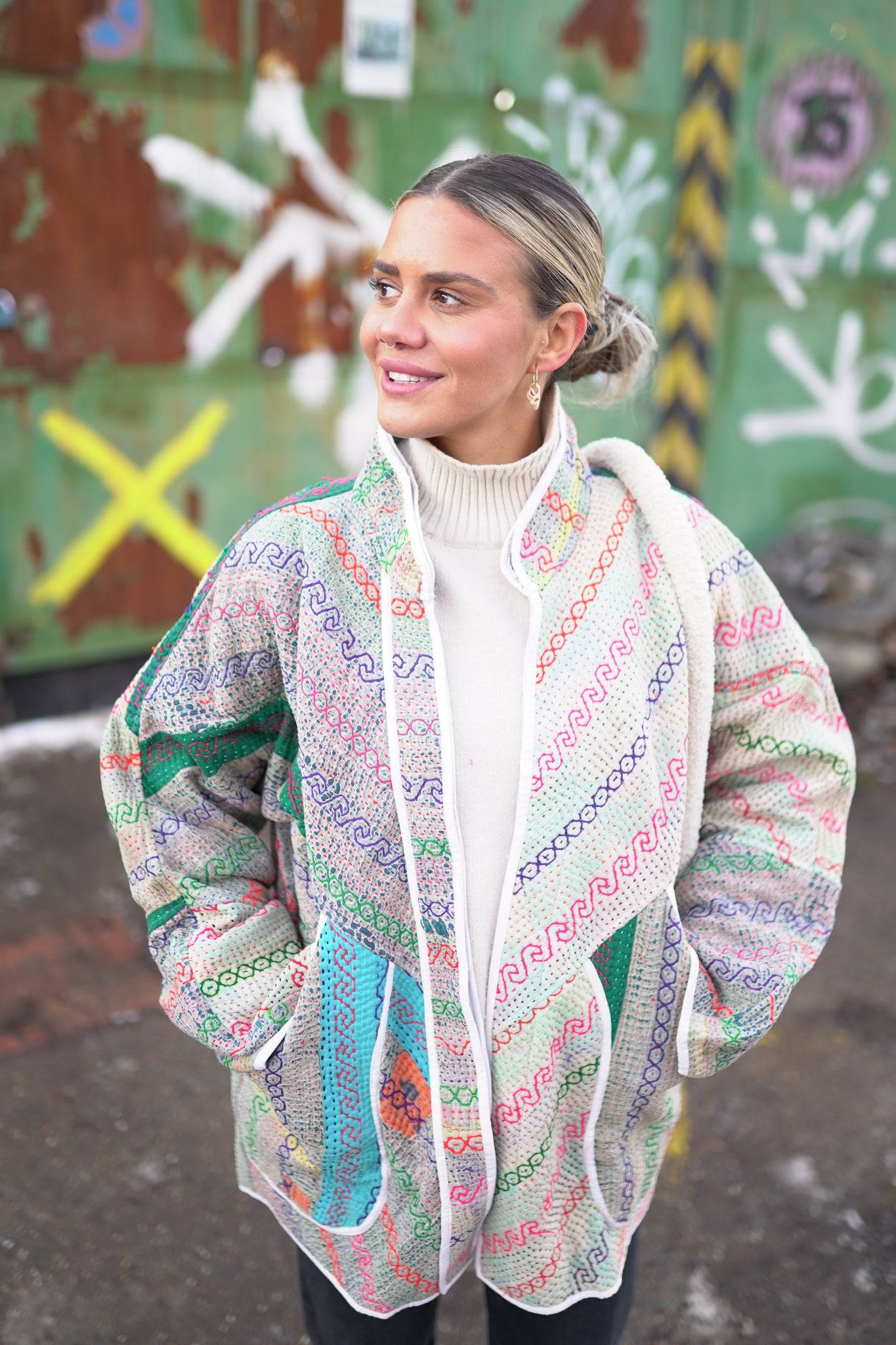 Naprosto nadčasová oversized láska na první pohled. Bunda je oboustranná, a tak si můžeš měnit vzhled dle nálady. Vyrobena z upcyklované vintage kanthy, která je stará až 100 let a každý steh je šitý ručně. Naprostý unikát, z každé jedinečné kanthy byla vyrobena pouze 1 bunda. Můžeš si být 100% jistý, že nikoho v té samé bundě nepotkáš. Buď originální :-)