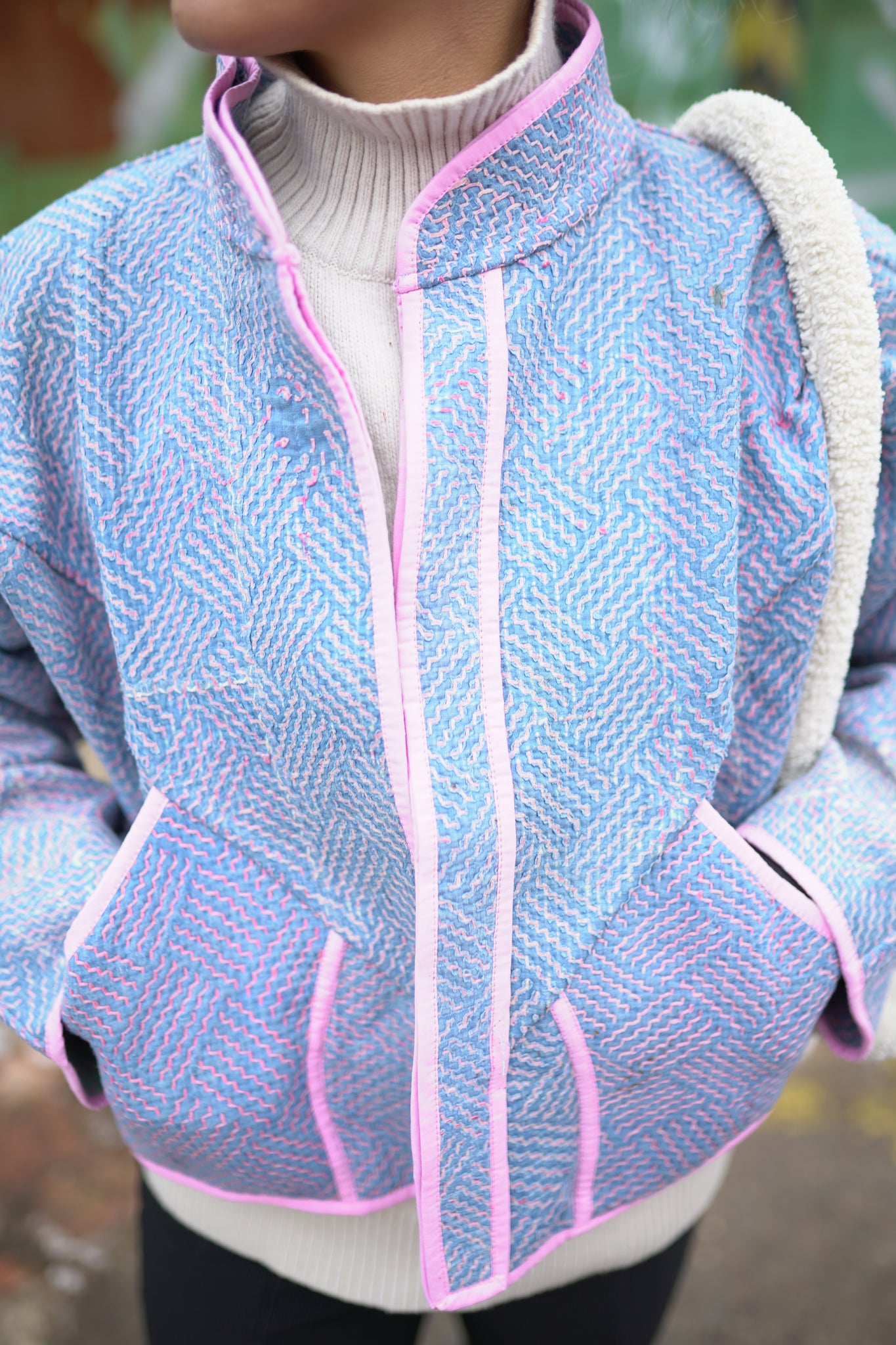 Naprosto nadčasová oversized láska na první pohled. Bunda je oboustranná, a tak si můžeš měnit vzhled dle nálady. Vyrobena z upcyklované vintage kanthy, která je stará až 100 let a každý steh je šitý ručně. Naprostý unikát, z každé jedinečné kanthy byla vyrobena pouze 1 bunda. Můžeš si být 100% jistý, že nikoho v té samé bundě nepotkáš. Buď originální :-)