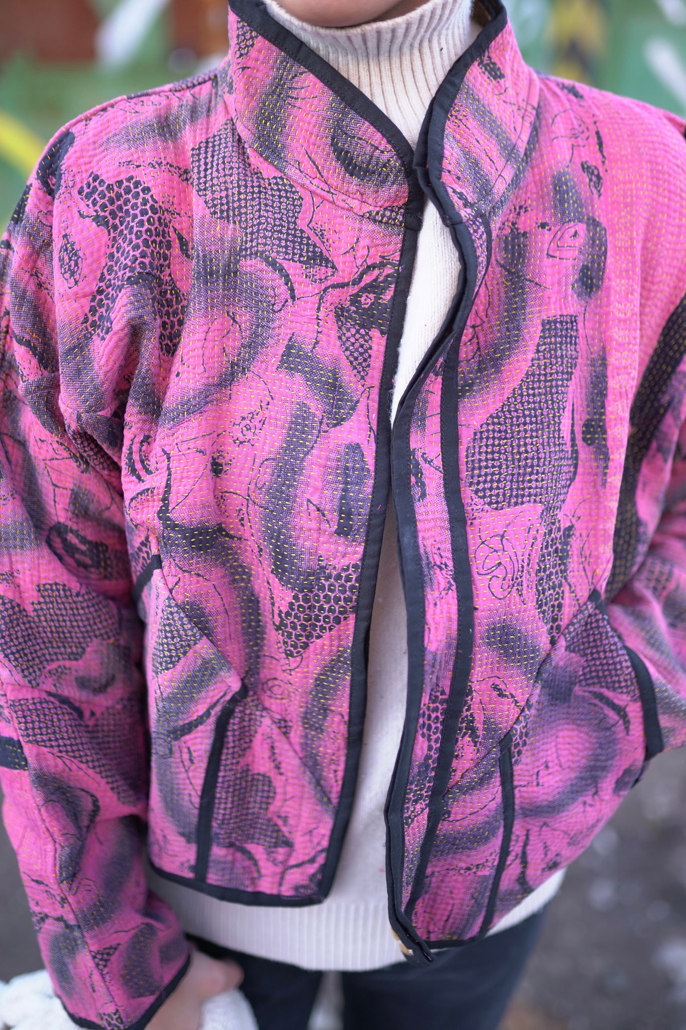 Naprosto nadčasová oversized láska na první pohled. Bunda je oboustranná, a tak si můžeš měnit vzhled dle nálady. Vyrobena z upcyklované vintage kanthy, která je stará až 100 let a každý steh je šitý ručně. Naprostý unikát, z každé jedinečné kanthy byla vyrobena pouze 1 bunda. Můžeš si být 100% jistý, že nikoho v té samé bundě nepotkáš. Buď originální :-)