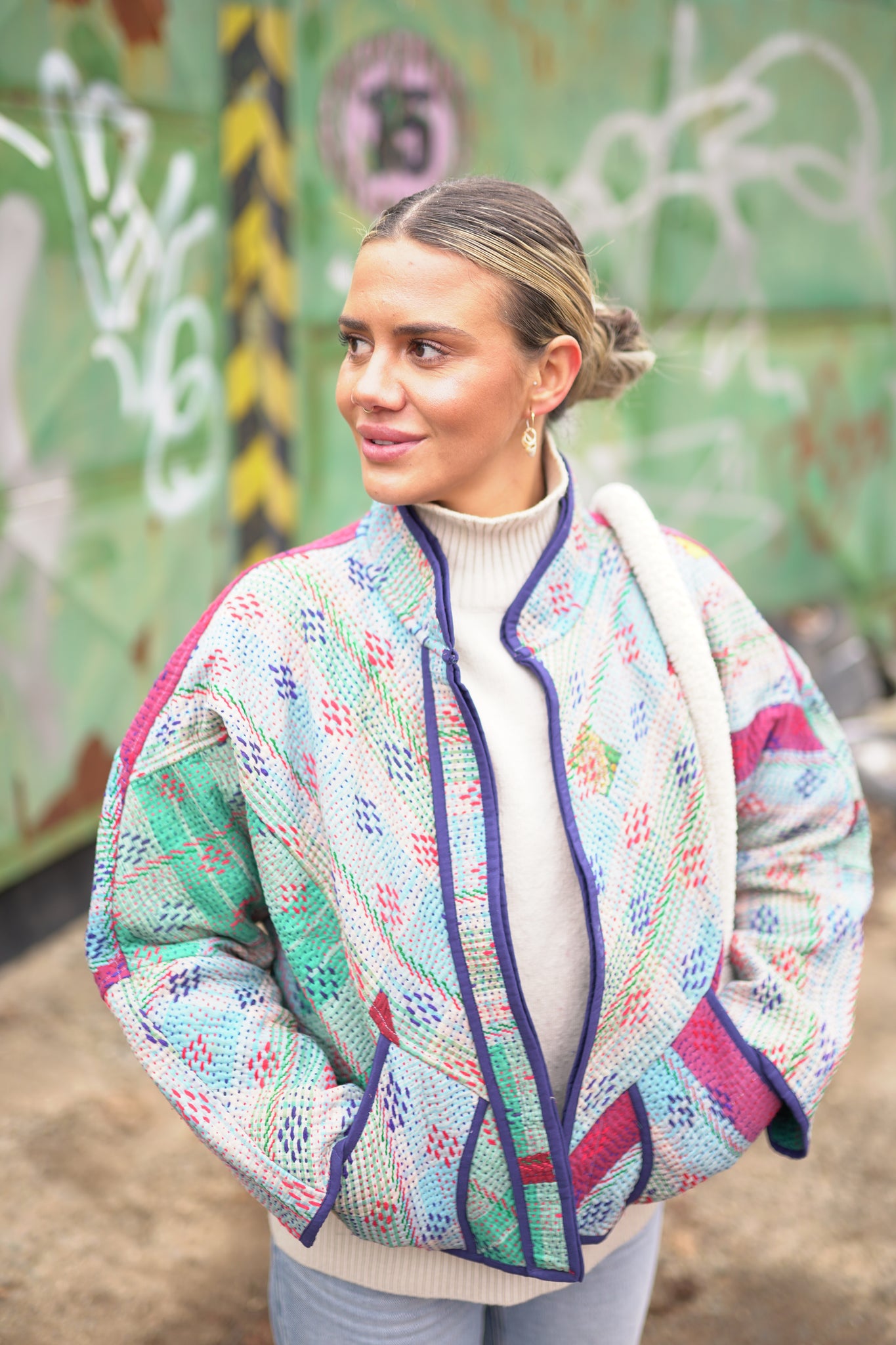 Naprosto nadčasová oversized láska na první pohled. Bunda je oboustranná, a tak si můžeš měnit vzhled dle nálady. Vyrobena z upcyklované vintage kanthy, která je stará až 100 let a každý steh je šitý ručně. Naprostý unikát, z každé jedinečné kanthy byla vyrobena pouze 1 bunda. Můžeš si být 100% jistý, že nikoho v té samé bundě nepotkáš. Buď originální :-)