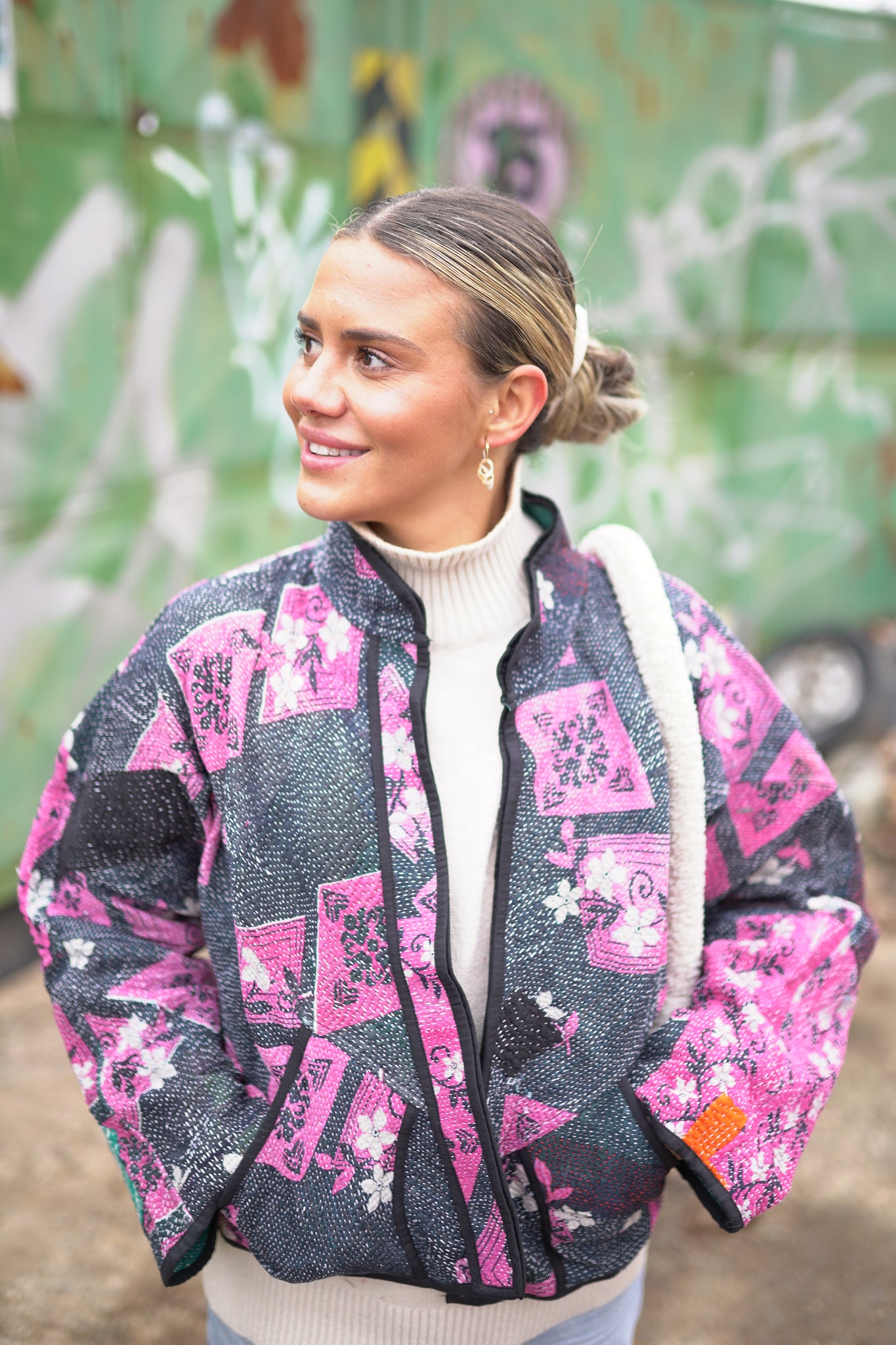 Naprosto nadčasová oversized láska na první pohled. Bunda je oboustranná, a tak si můžeš měnit vzhled dle nálady. Vyrobena z upcyklované vintage kanthy, která je stará až 100 let a každý steh je šitý ručně. Naprostý unikát, z každé jedinečné kanthy byla vyrobena pouze 1 bunda. Můžeš si být 100% jistý, že nikoho v té samé bundě nepotkáš. Buď originální :-)