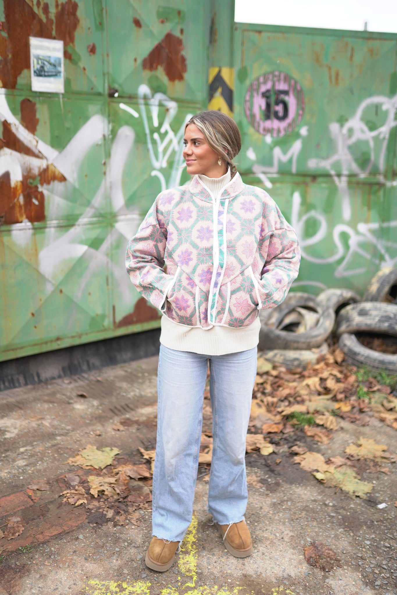 Naprosto nadčasová oversized láska na první pohled. Bunda je oboustranná, a tak si můžeš měnit vzhled dle nálady. Vyrobena z upcyklované vintage kanthy, která je stará až 100 let a každý steh je šitý ručně. Naprostý unikát, z každé jedinečné kanthy byla vyrobena pouze 1 bunda. Můžeš si být 100% jistý, že nikoho v té samé bundě nepotkáš. Buď originální :-)