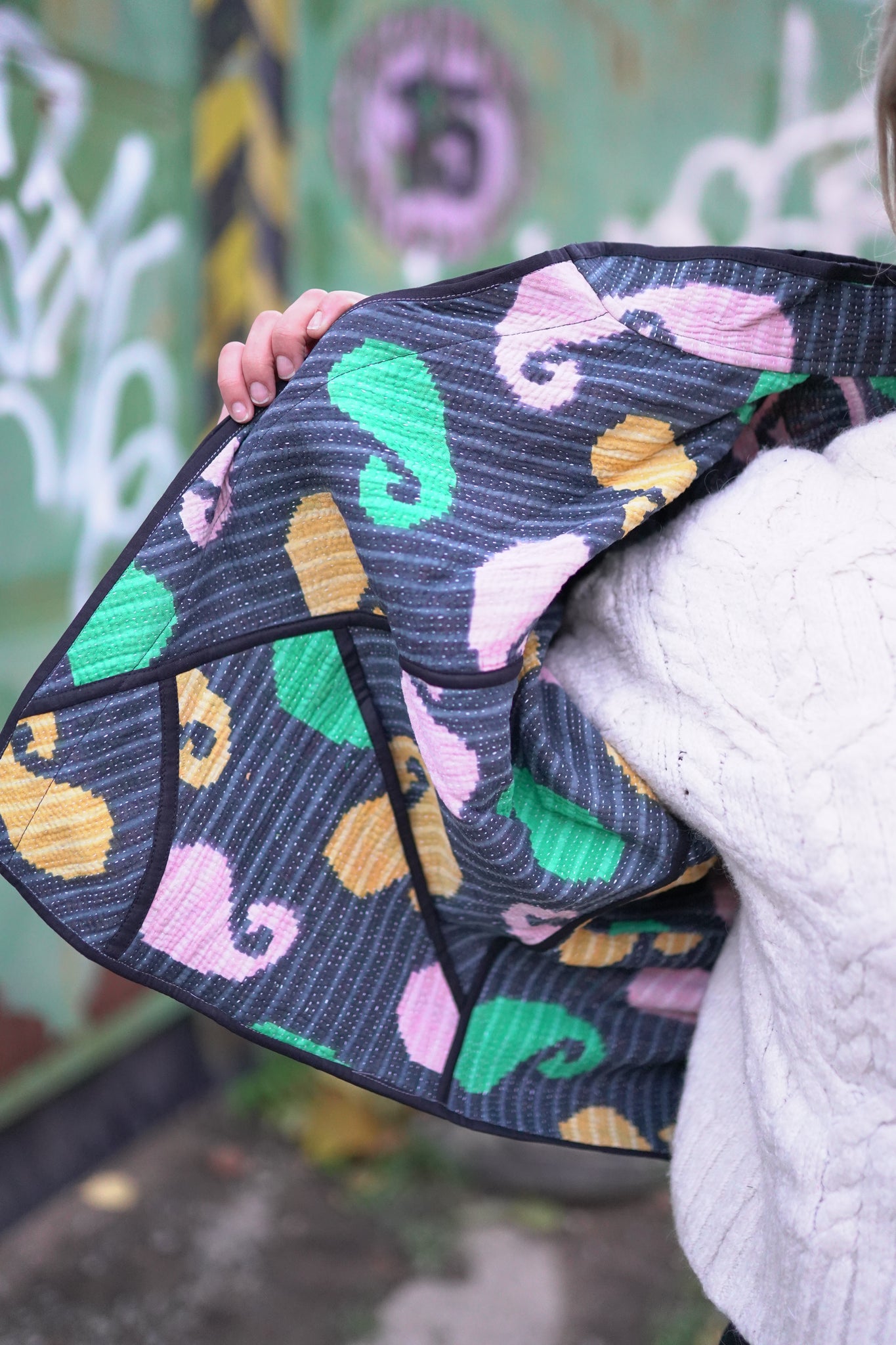 Naprosto nadčasová oversized láska na první pohled. Bunda je oboustranná, a tak si můžeš měnit vzhled dle nálady. Vyrobena z upcyklované vintage kanthy, která je stará až 100 let a každý steh je šitý ručně. Naprostý unikát, z každé jedinečné kanthy byla vyrobena pouze 1 bunda. Můžeš si být 100% jistý, že nikoho v té samé bundě nepotkáš. Buď originální :-)