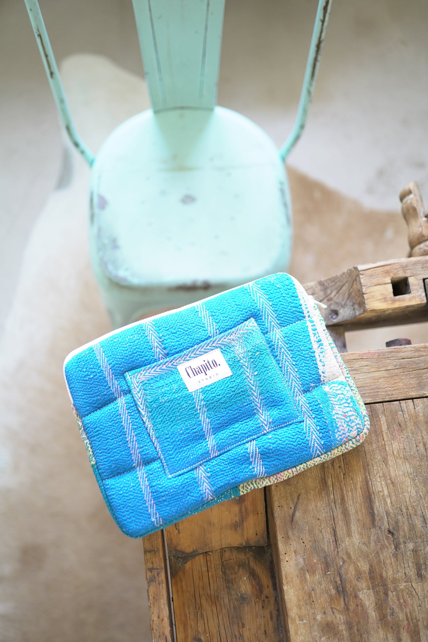Naše pečlivě vyrobené pouzdro z tradičního Kantha materiálu kombinuje funkčnost s duší řemesla. Každý kousek je upcyklovaný z vrstev ručně prošité bavlny, která nesla život v Indii po celé generace.