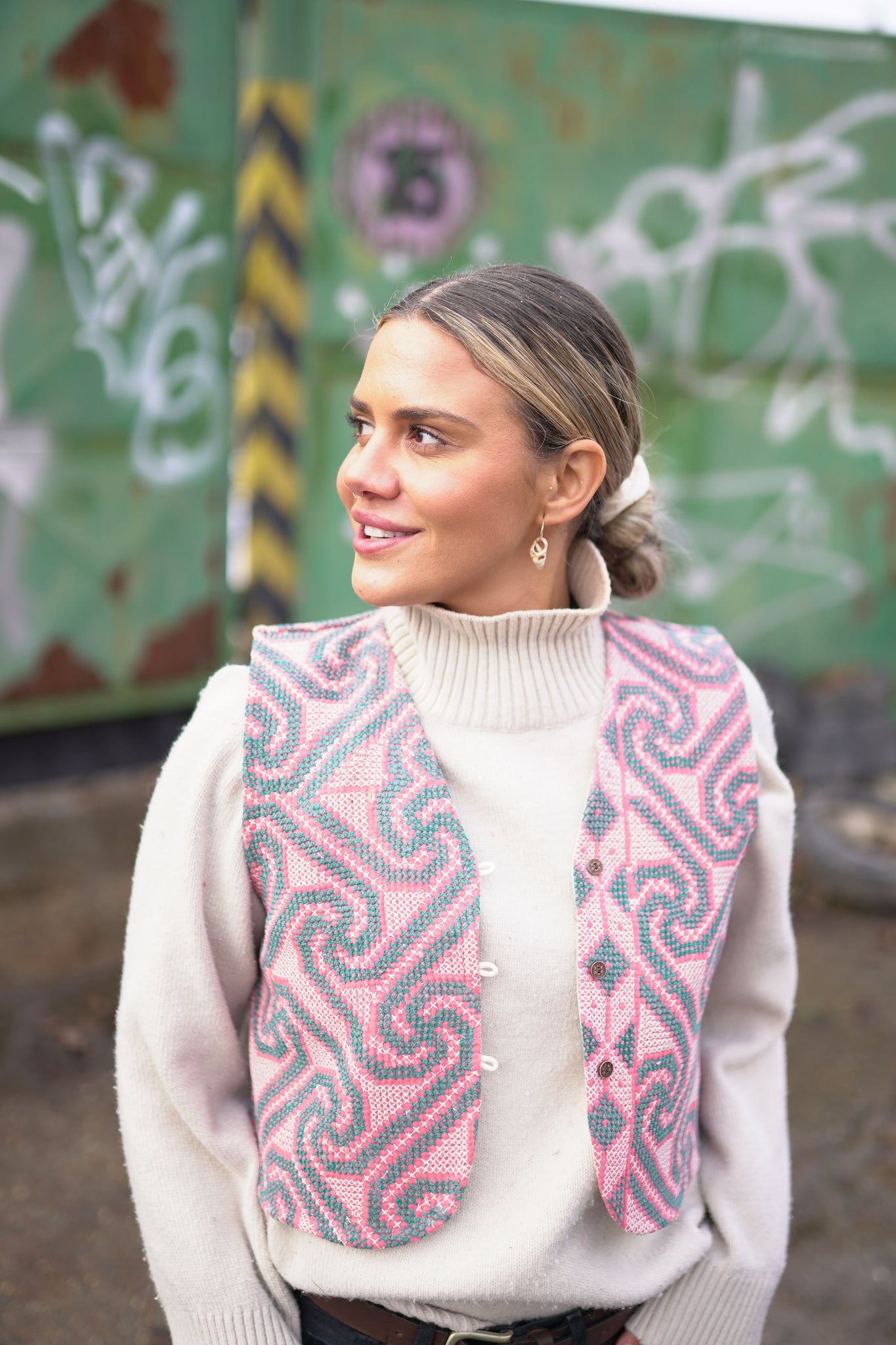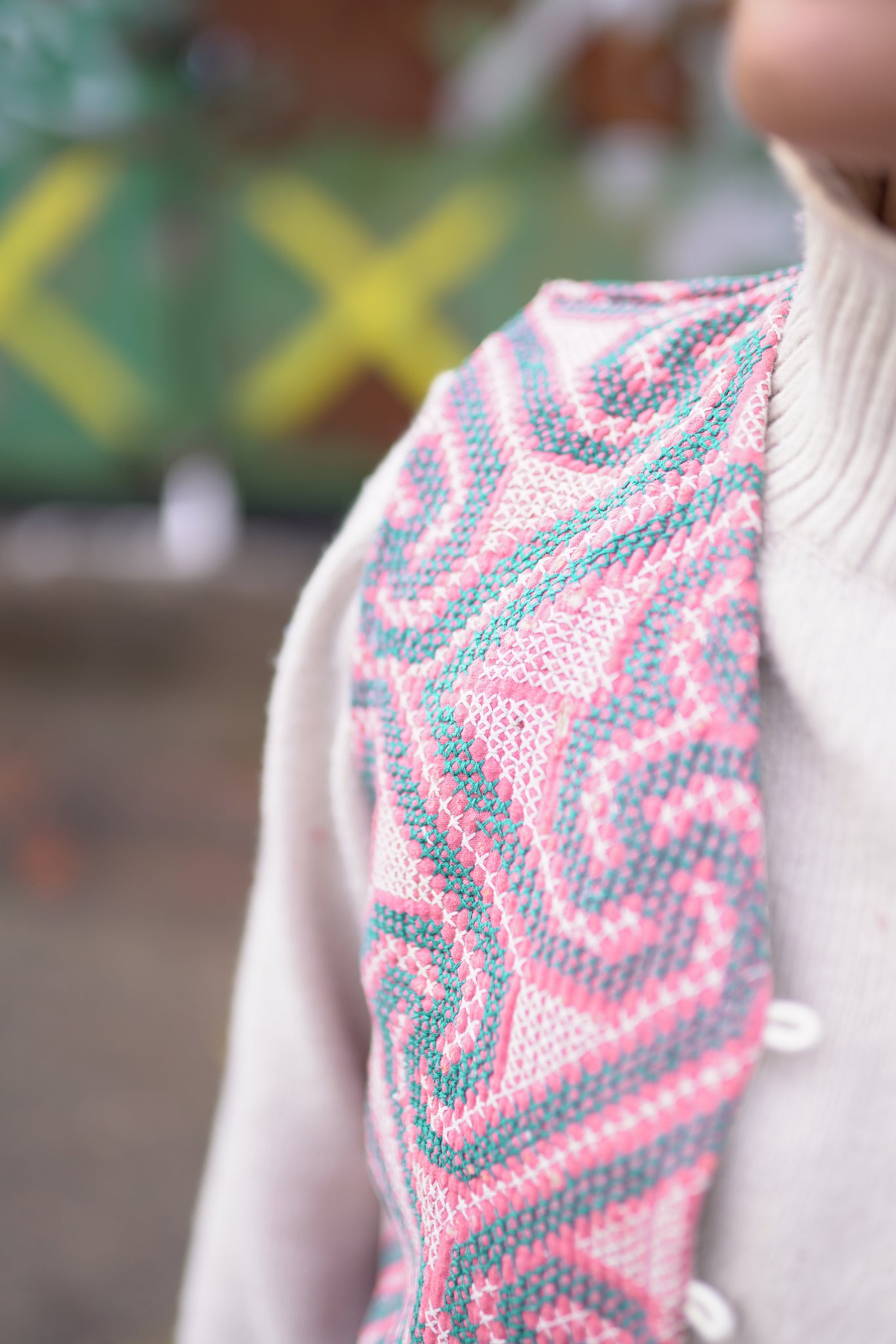 Naprosto nadčasová oversized láska na první pohled. Vesta je oboustranná, a tak si můžeš měnit vzhled dle nálady. Vyrobena z upcyklované vintage kanthy, která je stará až 100 let a každý steh je šitý ručně. K zapínání slouží roztomilé knoflíčky.