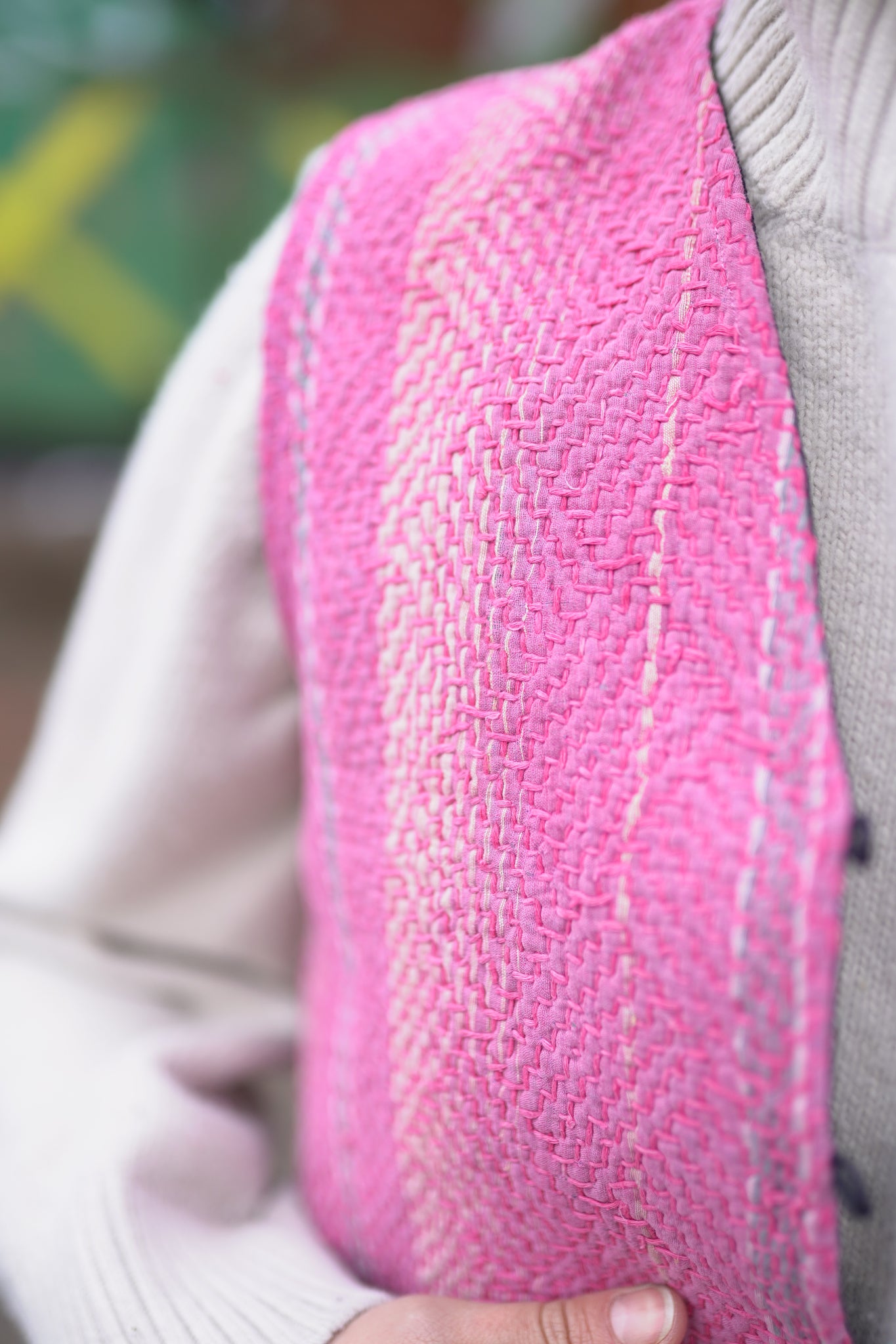 Naprosto nadčasová oversized láska na první pohled. Vesta je oboustranná, a tak si můžeš měnit vzhled dle nálady. Vyrobena z upcyklované vintage kanthy, která je stará až 100 let a každý steh je šitý ručně. K zapínání slouží roztomilé knoflíčky.