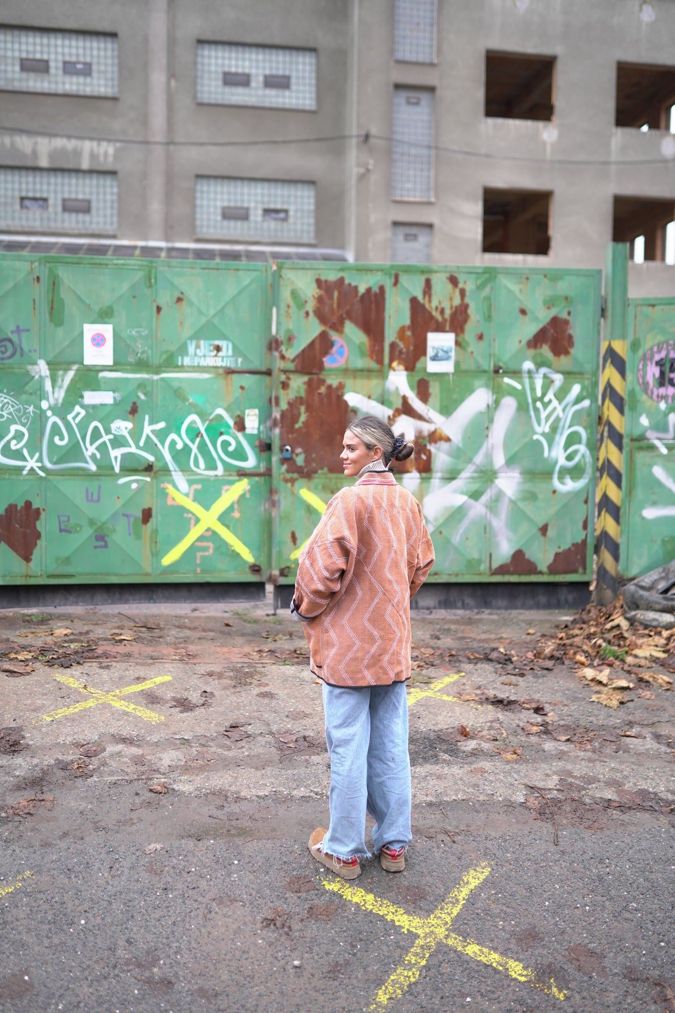Absolut zeitlose, übergroße Liebe auf den ersten Blick. Die Jacke ist wendbar , sodass Sie den Look je nach Lust und Laune verändern können. Hergestellt aus bis zu 100 Jahre altem Upcycling-Vintage-Kantha und jeder Stich ist von Hand genäht. Absolut einzigartig, aus jedem einzelnen Kantha wurde nur 1 Jacke hergestellt. Sie können 100 % sicher sein, dass Sie niemanden mit der gleichen Jacke treffen werden. Seien Sie originell :-)