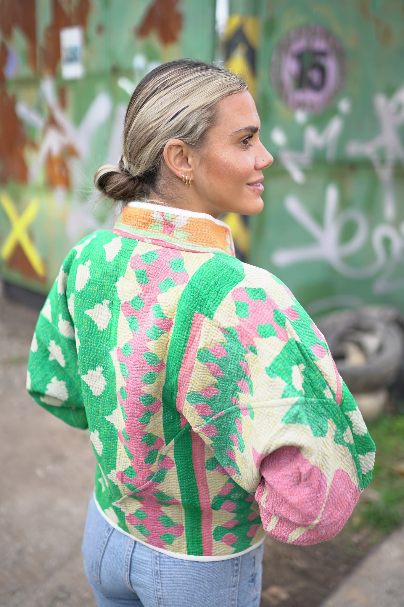 Absolutely timeless oversized love at first sight. The jacket is reversible , so you can change the look according to your mood. Made from upcycled vintage kantha, which is up to 100 years old and every stitch is sewn by hand. Absolutely unique, only 1 jacket was made from each unique kantha. You can be 100% sure that you will not meet anyone in the same jacket. Be original :-)