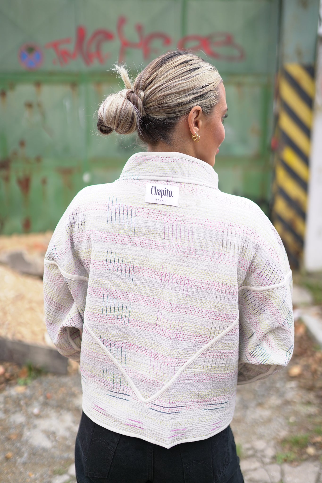 Absolutely timeless oversized love at first sight. The jacket is reversible , so you can change the look according to your mood. Made from upcycled vintage kantha, which is up to 100 years old and every stitch is sewn by hand. Absolutely unique, only 1 jacket was made from each unique kantha. You can be 100% sure that you will not meet anyone in the same jacket. Be original :-)