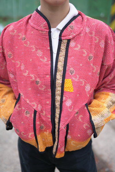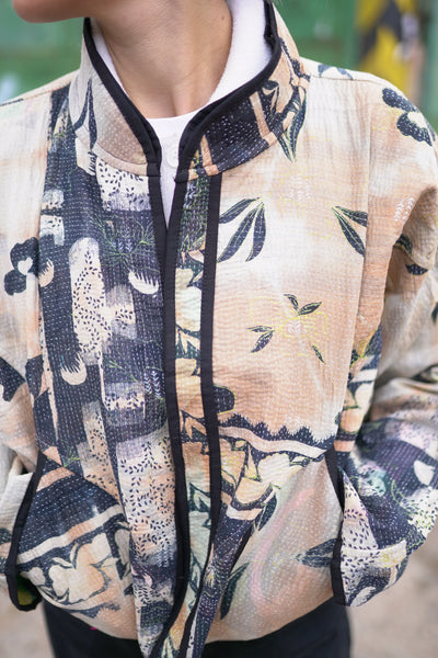 Naše kolekce bund od Chapito studio spojuje nadčasový design a ekologický přístup. Každý kousek je ručně vyrobený z vintage materiálů, včetně sárí a kanthy, a nabízí jedinečný styl pro každou příležitost. S důrazem na kvalitu a originalitu, naše bundy přinášejí šmrnc a pohodlí pro všechny ženy.